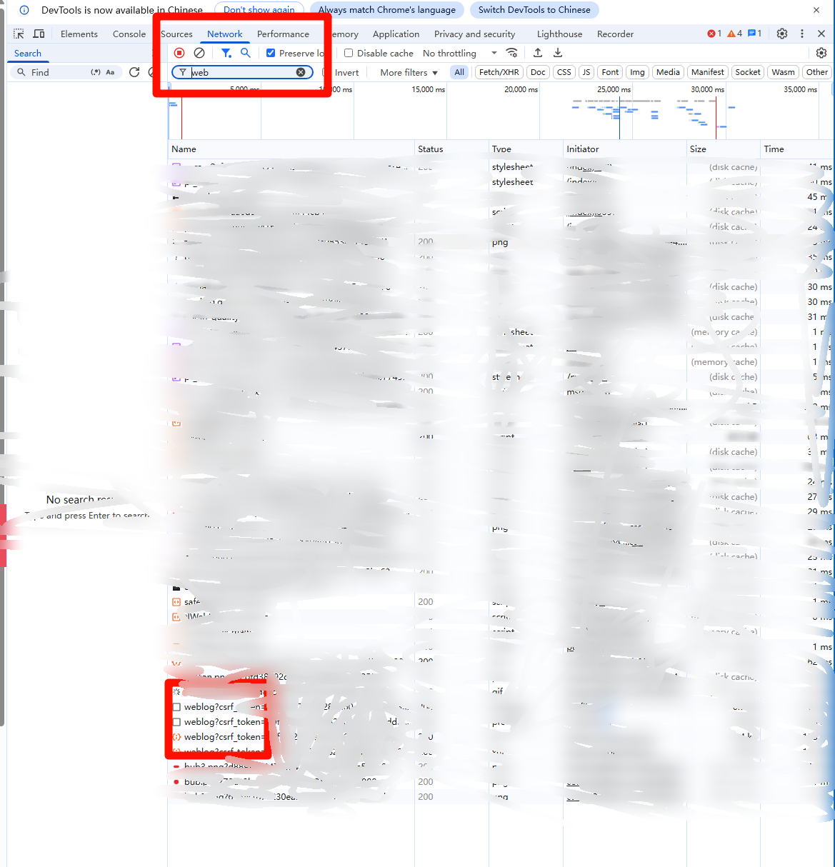 接下来我们进行网易云会员歌曲解锁操作,首先必须有网易云黑胶vip或者svip,然后电脑浏览器登录网易云,在浏览器网易云界面按下F12键位,点开上方的Network,在筛选框内输入web,再按下F5刷新,找到下面图片的weblog模块,点击